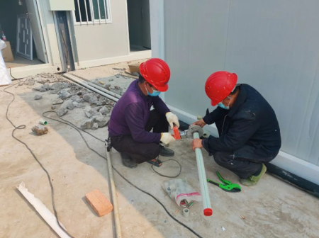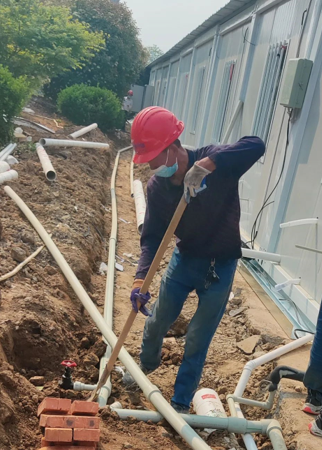 聞令而動,關(guān)鍵時刻挺身而出;逆行出征,眾志成城筑起防疫堤壩。時間緊任務(wù)重,工程部門所有人員不畏艱辛、全力以赴,從早上七點半一直工作到晚上九、十點。施工場地上,有趴在管道上的,有側(cè)躺在水泵旁的,有搬物料、卸管件、擰螺絲、鋪管道的,大家分工明確、秩序井然、有條不紊。