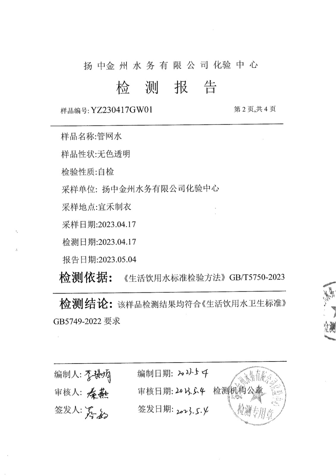水質(zhì)公告