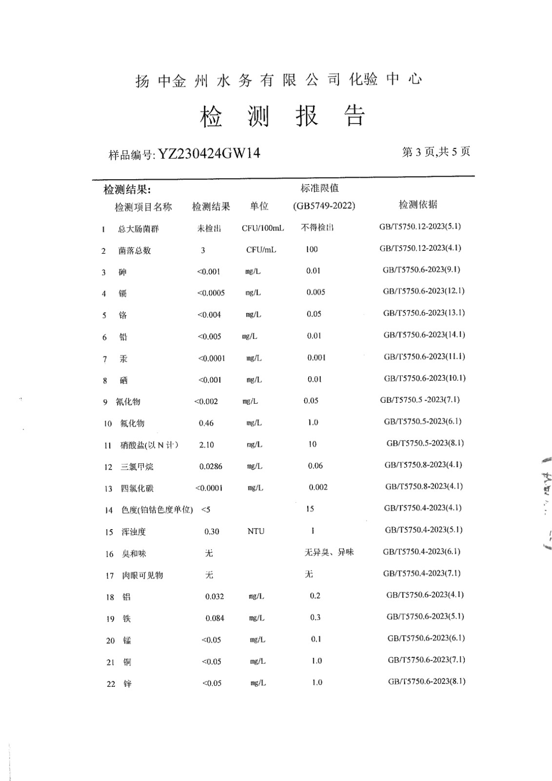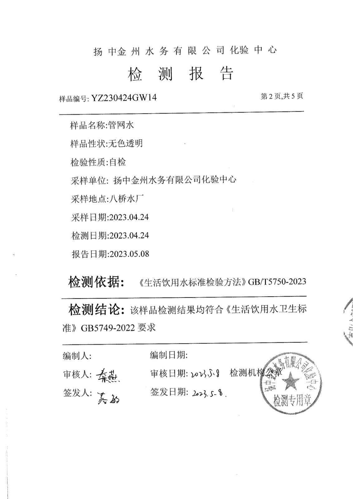 水質(zhì)公告