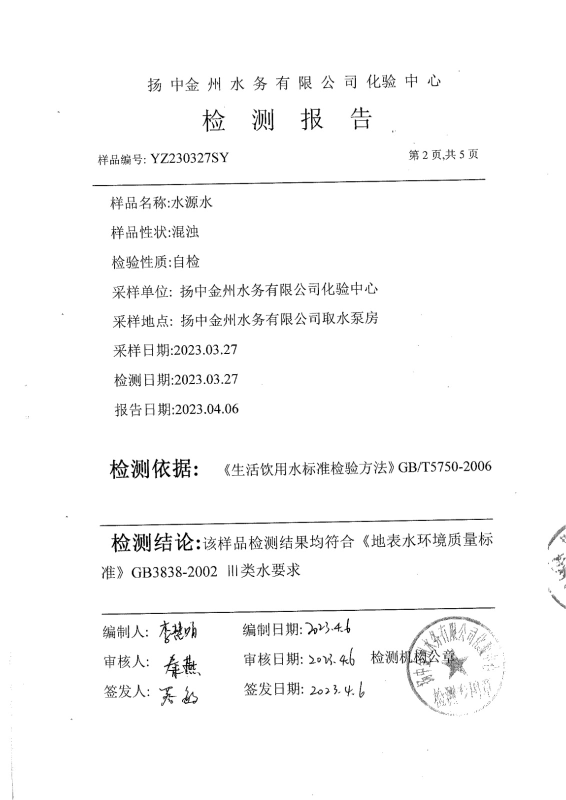 水質(zhì)公告