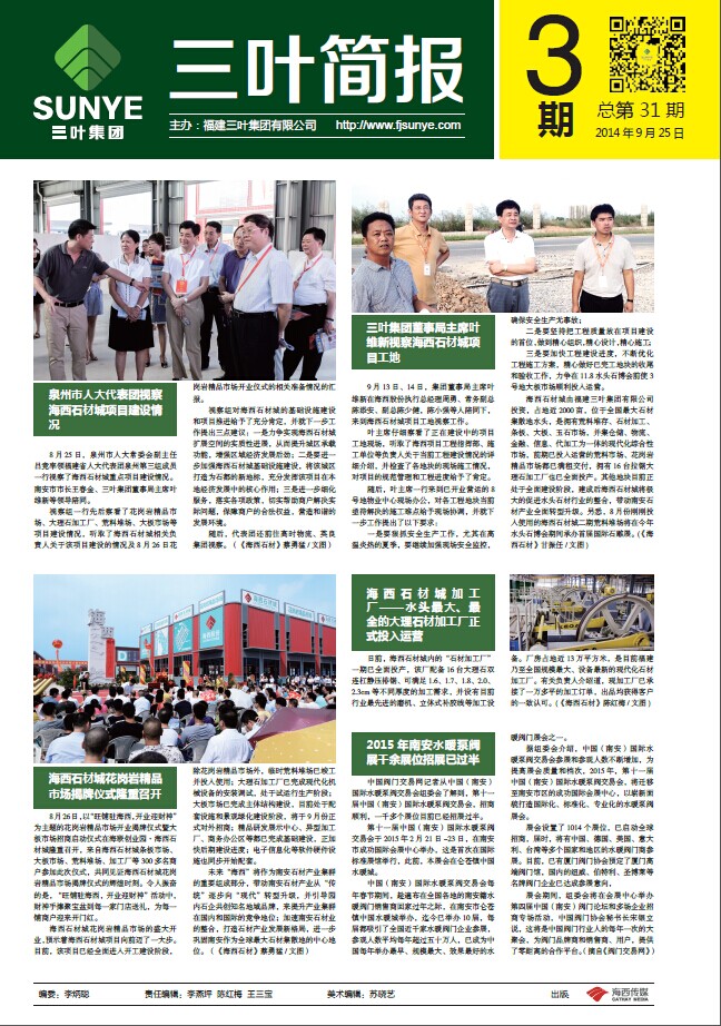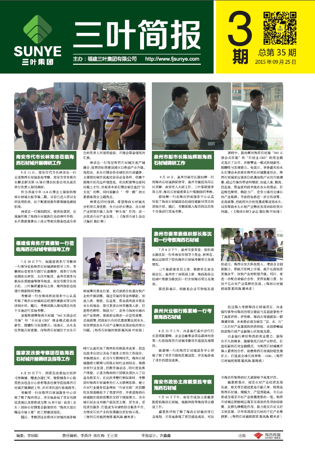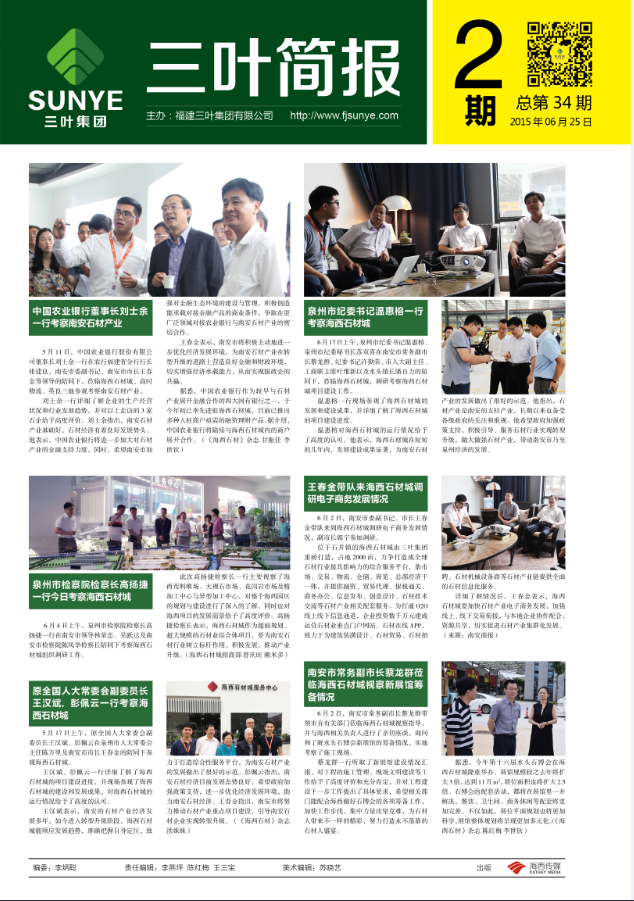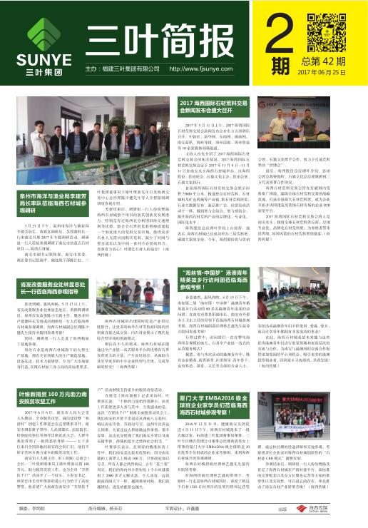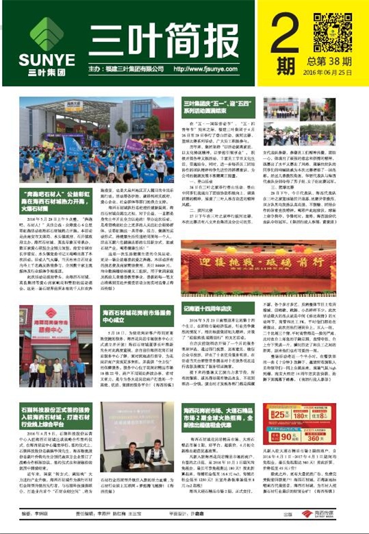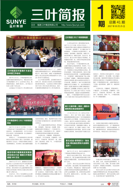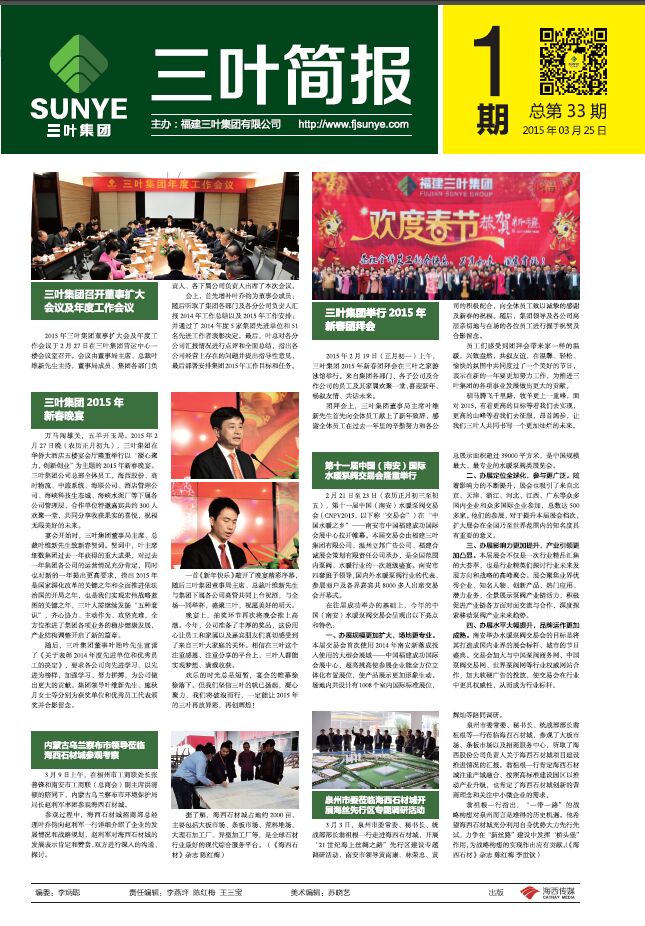 福建三葉集團(tuán)有限公司 地址:南安市成功科技園三葉之家 電話:0595-86378888 傳真:0595-86395998 郵編:362300 E-mail: liaozj@fjsunye.com