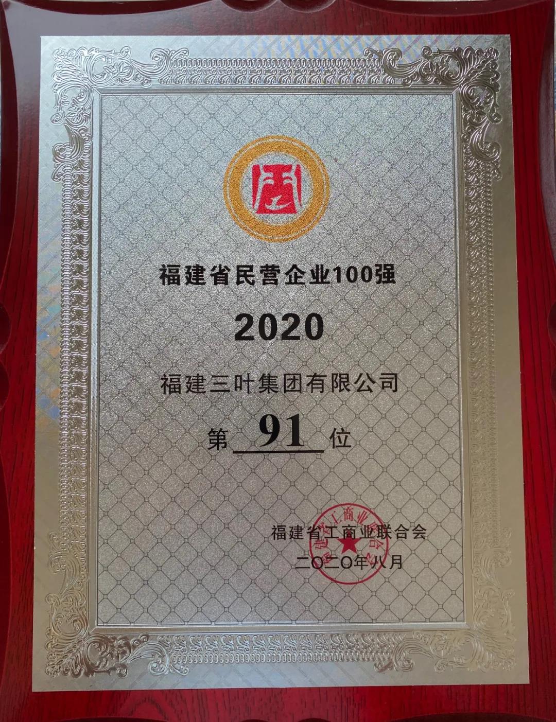 福建三葉集團再度上榜2020年度福建民營企業(yè)百強作者: 來源: 時間:2020-8-27 20:20:35 27日,省工商聯(lián)在福州發(fā)布了“2020福建省民營企業(yè)100強”“2020福建省民營企業(yè)制造業(yè)50強”榜單,同時發(fā)布《2020福建省民營企業(yè)100強分析報告》《2020福建省民營企業(yè)社會責任報告》。我省民營經(jīng)濟高質量發(fā)展成色明顯,成為經(jīng)濟社會發(fā)展的重要力量和創(chuàng)造社會財富的重要來源。規(guī)??偭坎粩鄩汛?。 今年榜單的入圍門檻近18億元,比上年增加2.94億元,營業(yè)收入總額合計為16382.65億元,對福建經(jīng)濟社會貢獻不斷提高,民營經(jīng)濟高質量發(fā)展成色明顯。此次福建三葉集團有限公司再度入選2020年度福建民營企業(yè)百強榜單,是對公司實力的進一步印證,同時也是政府和社會對公司經(jīng)營成績的認可和鼓勵。公司將以此作為前進動力,繼續(xù)為福建經(jīng)濟發(fā)展做出更大貢獻!